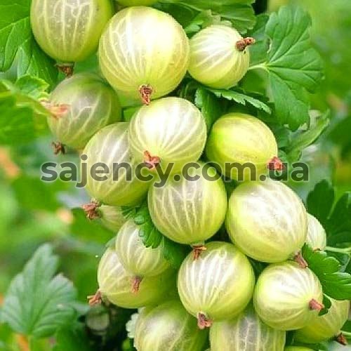 Ягоди великі, округло-овальні, яскраво-зелені з легким восковим нальотом. М’якуш соковитий, ніжний, десертного смаку з приємною кислинкою. Завдяки густій шкірці плоди добре зберігаються й транспортуються без втрати товарного вигляду.