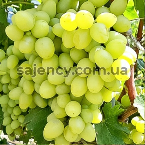Грона великі, масою від 500 г до 2 кг, конічної або циліндричної форми, середньої щільності. Ягоди великі, овальні, світло-зеленого або жовтуватого кольору. Шкірка тонка, але міцна. М’якоть соковита, м’ясиста, з гармонійним солодким смаком і легким мускатним відтінком.