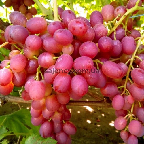 Грона великі, циліндрично-конічні, середньої щільності, масою 600–1200 г, часто зустрічаються ще більші. Ягоди видовжено-овальні, великі, вагою 10–15 г. Колір рожевий або рожево-бурштиновий, із сонячним засмаженням. М’якоть соковита, ніжна, дуже солодка, з приємним мускатним присмаком. Шкірка тонка, майже непомітна при споживанні.